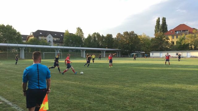 Statt der Trainingseinheit am Donnerstag trat unsere 1. Männer heute beim Sparkassenoberligisten SV Helios 24 Dresden an. Mit leichter Verspätung pfiff Schiedsrichter Christoph Teichmann die Partie kurz nach 19 Uhr bei sommerlichen Temperaturen an. Die ersten fünf Minuten konnten gefallen, Dölzschen durchaus bemüht auf fremden Rasen Akzente zu setzen. Der erste Treffer blieb nach einem Fehler im Abwehrverbund jedoch den Gastgebern vorbehalten, Frank Schulz (8.) hatte keine Mühe Ronny Höhle im Tor der Dölzschener zu überwinden. Nach Abstimmungsproblemen konnte Rocco Bischoff (34.) auf 2:0 aus Sicht des Heimteams erhöhen, auch hier blieb den Torwart keine Chance. Nach der Pause nutzte Cheftrainer Tino Garnat die Gunst und wechselte Marcel Teichmann für Eric Mäntler, dieser konnte nur ein wenig verschnaufen und musste nach gut 10 Minuten Pause für den verletzten Dennis Tauscher wieder ran. Knapp 15 Minuten vor Spielende verletzte sich Jan Göhler auf Dölzschener Seite, sodass das Spiel mit neun Feldspielern und Torwart zu Ende gebracht wurde. Der Anschluss- und Ehrentreffer gelang Nick Grahl aus Ferndistanz mittels sehenswertem Volley per Direktabnahme, ein Tor, was man wohl nicht zu oft verwandelt.
