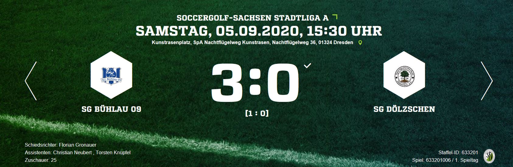 In der 2. Halbzeit änderte sich das Bild kaum. So waren es wieder die Bühlauer L. Unger und M. L. Müller die ordentlich Tempo ins Spiel brachten und die Dölzschener Elf somit zur Verzweiflung trieben. Dann in der 67. Minute ging der Ball erst an das Aluminium und danach ins Tor. Die Gäste führten somit durch den Treffer von Georg Raffelt nun mit 2:0. Doch das Unheil sollte für Dölzschen noch nicht enden. In der 80. Minute hieß es erneut Gelb/Rot für Dölzschen. Diesmal traf es Sebastian Dallhammer nach einer Notbremse im 16er. Da er bereits in der 16. Minute schon verwarnt wurde, ging es auch für ihn frühzeitig unter die Dusche. Den daraus resultierenden Elfmeter verwaltete für die Heimelf Sebastian Höhne. So rannte man mit zwei Mann weniger einem drei Tore Rückstand aus Dölzschner Sicht hinterher. Die Göttin Fortuna, war in der Nachspielzeit dann doch noch einmal nachsichtig und lies den letzten Schuss der Bühlauer an der Latte abprallen. Damit ging ein Spiel zu Ende was es schnell abzuhaken gilt.