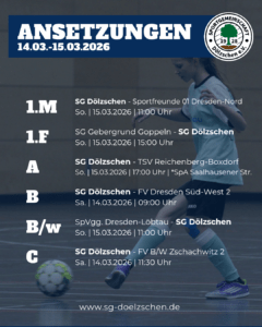 Auch dieses Wochenende ist wieder volle Action mit vielen Heimspielen angesagt.Am Samstag spielen hintereinander unsere B-, C- und D-Jugend Teams Am Dölzschgraben.Am Sonntag sind dann auch wieder unsere Männer zu Hause gefordert, 11 Uhr gegen den Tabellenfünften, die Sportfreunde 01 Dresden-Nord. Außerdem finden davor und danach die Heimfestivals unserer F1-…