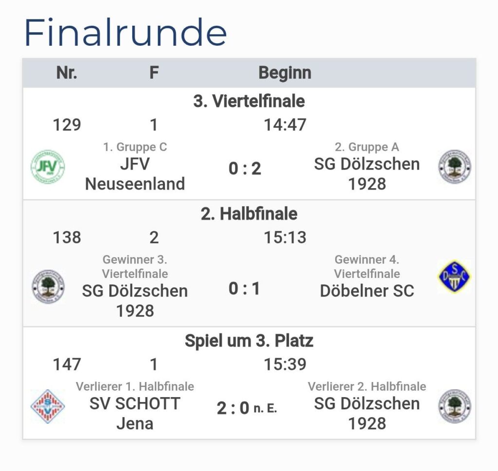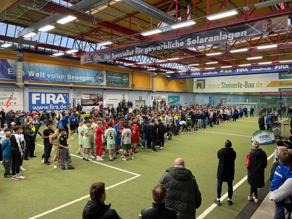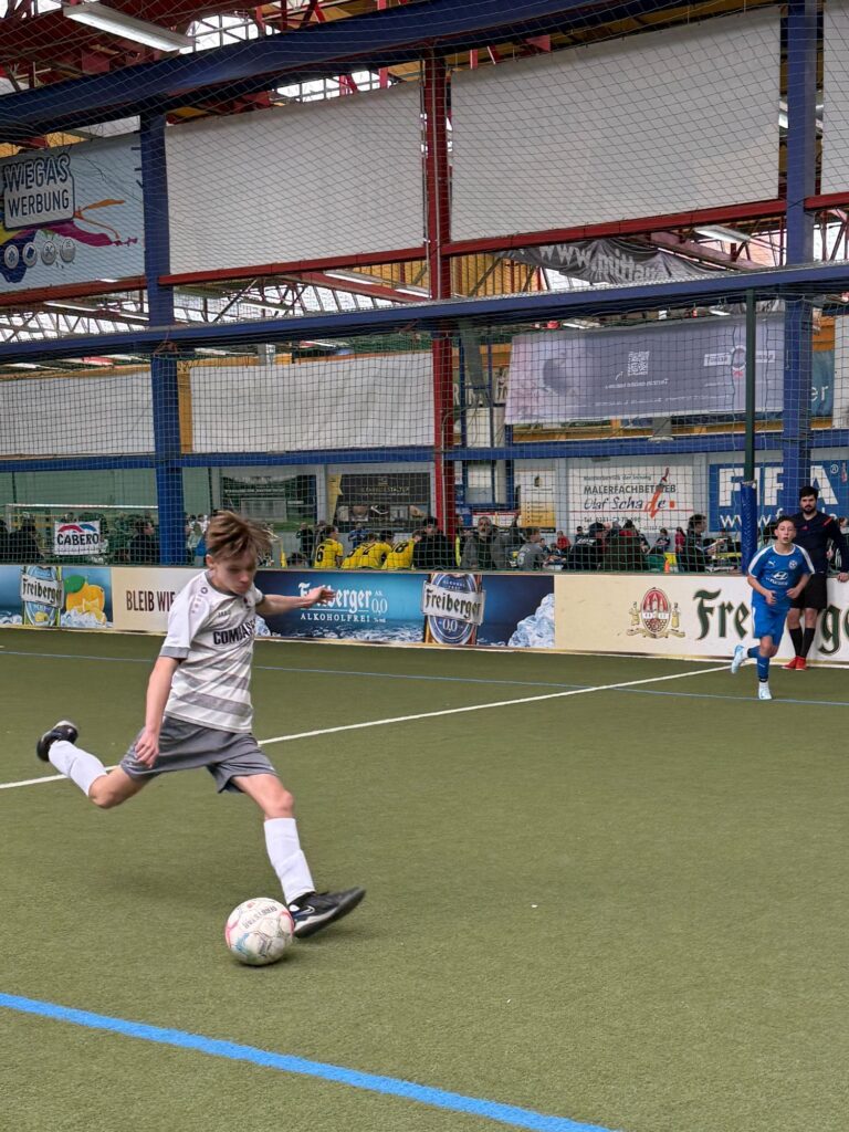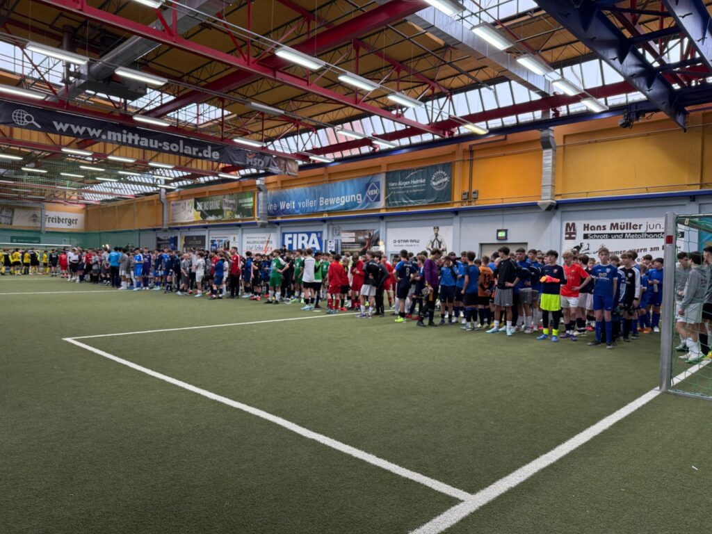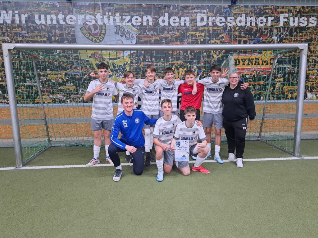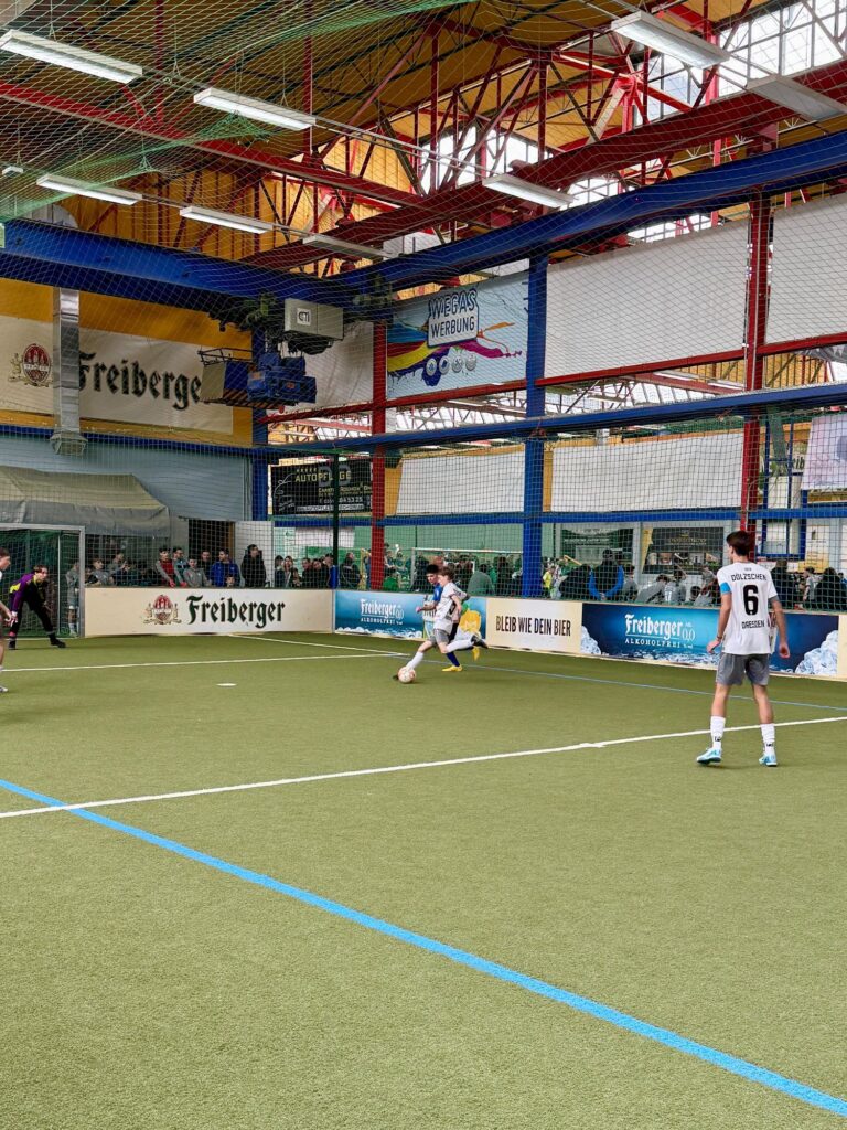 Am vergangenen Wochenende nahm unsere C-Jugend in der Soccer Arena Dresden an der 19. Auflage der größten Hallenfußball-Turnierserie für Nachwuchs-Vereinsmannschaften Deutschlands, dem WINTEC AUTOGLAS Budenzauber 2025 (ehemals DUBAI-CUP) teil. Insgesamt 32 Mannschaften traten in 4 Gruppen an, gespielt wurde auf 4 Feldern, zwei davon mit Vollbande. Unseren Jungs gelang dabei eine hervorragende Gruppenphase, mit 5 Siegen und 2 Unentschieden. Besonders auf dem kleineren Spielfeld mit Bande überzeugte man mit viel Spielwitz und toll rausgespielten Toren. Mit dem 2. Platz in der Gruppe qualifizierte man sich für die großen Viertelfinalspiele. In einem hochklassigen Duell mit dem JFV Neuseeland setzte man sich mit 2:0 durch und zog ins Halbfinale ein. Hier wartete der Döbelner SC. In einem engen Spiel ohne viele Chancen und vielen Zweikämpfen zog man schließlich mit 0:1 leider den Kürzeren. Im Spiel um Platz 3 gegen den SV Schott Jena zeigte man dann nochmal eine klasse spielerische Leistung, vergab aber leider vor dem Tor zu viele Möglichkeiten um einen verdienten 3.Platz einzufahren, sodass man dann äußerst bitter im 9 Meter Schießen unterlag. Den Turniersieg holte sich der TSV Rudow gegen den Döbelner SC, ebenfalls im 9 Meter Schießen. Glückwunsch!