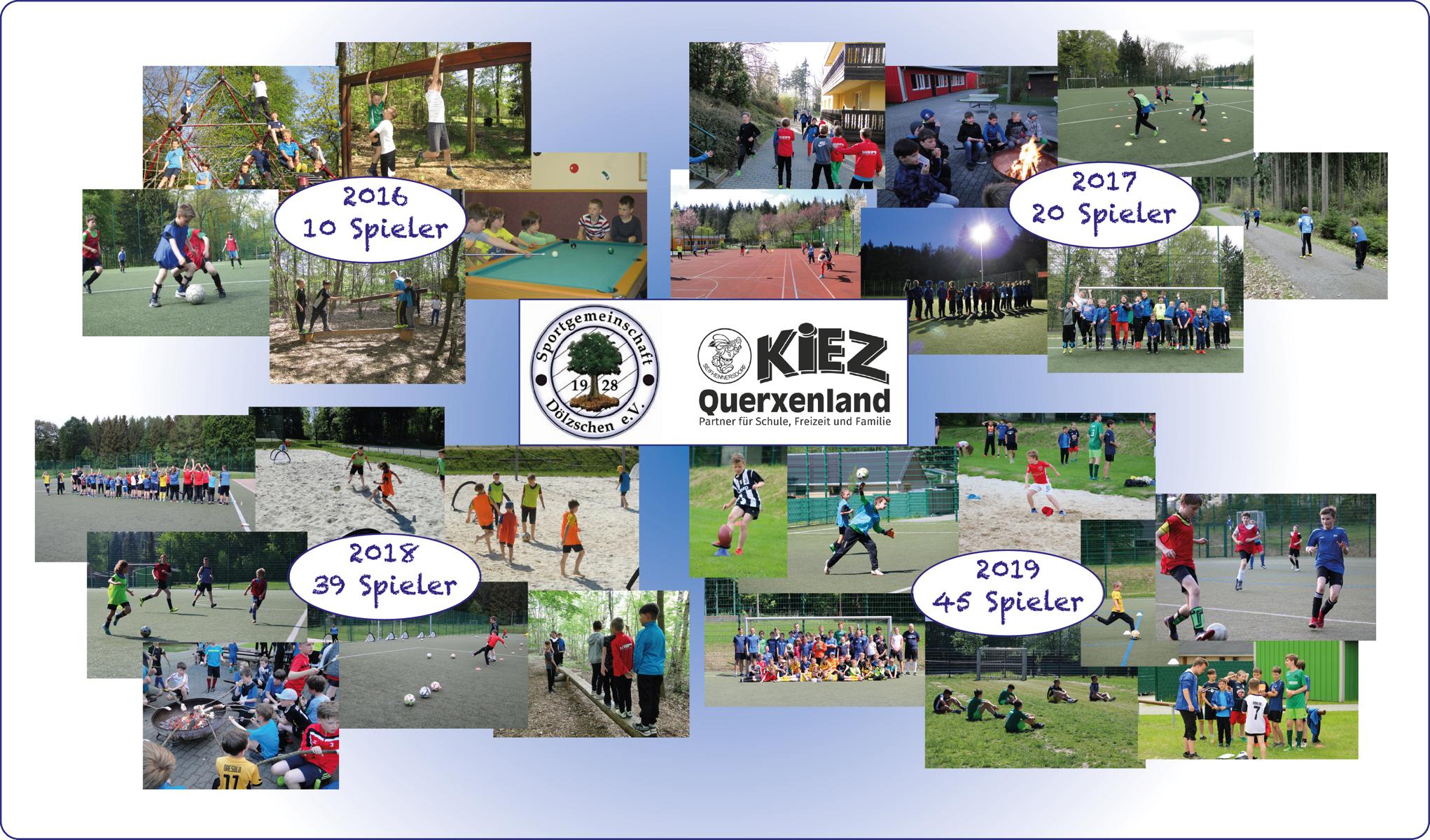 Himmelfahrt 2016 starteten wir mit 10 Spielern und riefen Traditionen wie unsere Frühsport-Einheit, die Werwolf-Spielrunden und das Beachsoccer-Turnier ins Leben. Ein Jahr später nutzen wir das verlängerte Wochenende um den 1. Mai für unsere Nachwuchsfahrt. Unsere Gruppe hatte sich verdoppelt und maß sich unter anderem bei Waldläufen und einem Zwei-Felder-Ball-Turnier. Der Stockbrot-Abend und das abendliche Kicken durfte natürlich wie immer nicht fehlen. Erstmals mit dem Bus reisten wir dann Himmelfahrt 2018 ins Querxenland - das steigerte die Aufregung bei allen 39 Spielern. Zombie-Ball, ein Fußball-Biathlon-Wettkampf und viele Bolzplatz-Spiele mit gemischten Altersklassen sorgten für neue Höhepunkte. Ein spannender Fußball-Fünf-Kampf war das Highlight der 45 Spieler Himmelfahrt 2019! Bei Fußballtennis, Fußballdart, 4-Gewinnt, einem Rätsellauf und einem 4-Ball-Schießen konnten die gemischten Mannschaften ihr Können und Geschick rund um das runde Leder beweisen. Torwarttraining im Sand, Ausdauerlauf für die "Großen" und erste Erfahrungen auf einem Trimm-Dich-Pfad für die "Jüngsten" sorgten für viel Abwechslung.