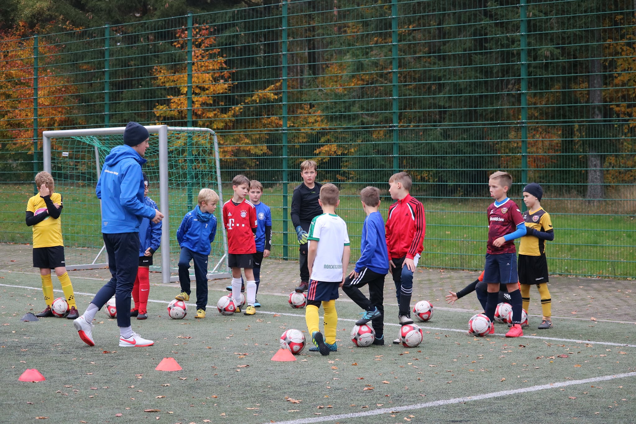Da im Moment leider nur Einzel- oder Onlinetraining auf dem Programm stehen, blicken wir auf die Herbstferien zurück, wo unser traditionelles Nachwuchstrainingslager im Kiez Querxenland noch stattfinden durfte. Trotz des ausgefallenen ursprünglichen Termins an Himmelfahrt, der für uns umzusetzende Hygieneauflagen und der Unterbringung in einem separaten Haus statt der favorisierten Bungalows, hatten alle Beteiligten tolle, erlebnisreiche und sportliche Tage. Es waren 2 F-Junioren, 10 E-Junioren, 13 D-Junioren und 5 C-Junioren Spieler mit dabei. Neben mannschaftsinternen Einheiten auf dem Kunstrasen, Bolzplatz oder im Wald, brachten besonders die mannschaftsübergreifenden Aktionen jede Menge Spaß und entwickelten das vor allem durch vorangegangene Trainingslager entstandene Gemeinschaftsgefühl unserer Nachwuchsmannschaften weiter. Zu nennen sind da ein Wettkampf, wobei der älteste mit dem jüngsten Spieler, der zweitälteste mit dem zweitjüngsten Spieler usw. 2er Teams bildeten, und an den Stationen Koordinationsstaffellauf, Memorypassspiel, Dribblingparcours und Torwandschießen gegeneinander antraten sowie natürlich das Abschlussturnier mit vier gemischten Mannschaften.