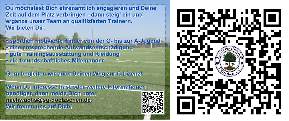 Bist du interessiert oder hast noch Fragen? - Melde dich einfach unter nachwuchs@sg-doelzschen.de ! Wir freuen uns auf dich!